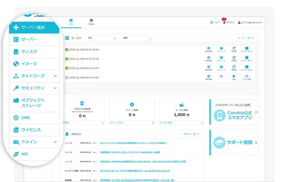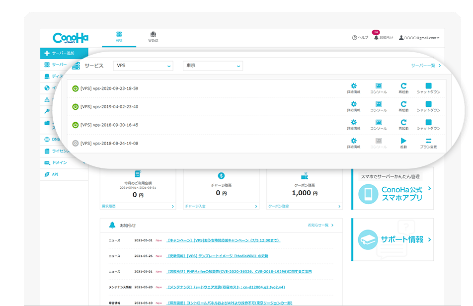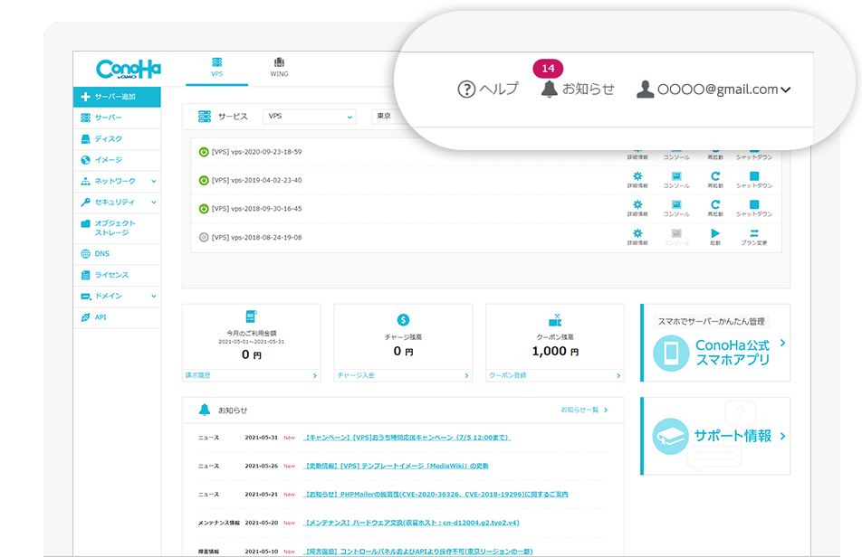 - ConoHa VPSの最新情報をお知らせします。